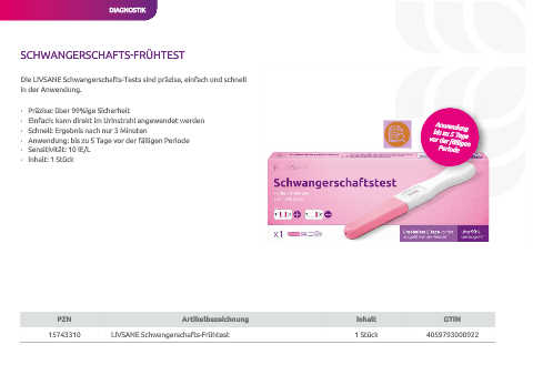 15743310 LIVSANE Schwangerschafts-Frühtest 1 Stück 4059793000922