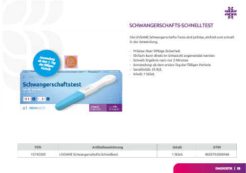 15743385 LIVSANE Schwangerschafts-Schnelltest 1 Stück 4059793000946